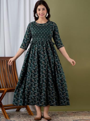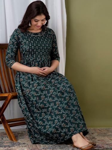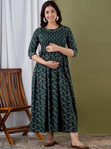 Albela Maternity Gown | Baby Feeding Dress | Pregnancy Wear | Comfy Maternity Kurta | Maternity Trending Maternity Dress (in, Alpha, S, Regular, Bottle Green)