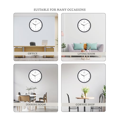 Clear and Readable Design: The Solimo Wall Clock features large numbers and a clear front for easy readability, making it a stylish addition to any wall in your bedroom, school, office, living room, kitchen, or commercial space.