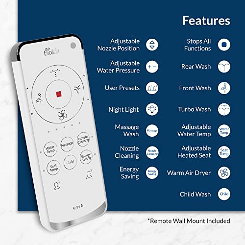 Bio Bidet Slim Three Electric Bidet Toilet Seat Round, Heated Seat, Adjustable Warm Water with Air Dryer, Smart Seat Sensor, Night Light, Wireless Remote Control, White