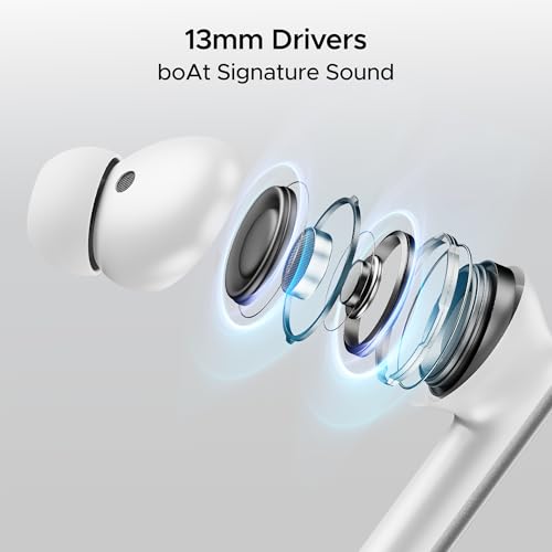 boAt Airdopes 111v2, Leather Finish, 4Mics ENx, 50H Battery, 13mm Drivers, Dual Pair,Stream Ad Free Music via App Support, Bluetooth TWS in Ear Earbuds Wireless Earphones with mic ((Ivory White)