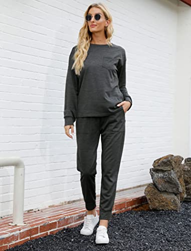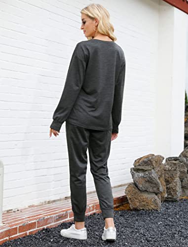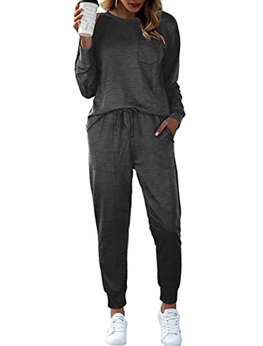 Bofell Lounge Sets for Women Two Piece Travel Outfits Sweatsuits 2 Piece Fashion 2024 Trendy Pajamas, Dark Grey, Medium
