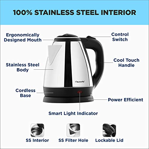 - 46% Butterfly EKN 1.5 Litre Stainless Steel Electric Kettle | 1500 W | 360° Swivel Power Base | Auto Shut Off | For Hot Water, Tea, Coffee, Noodles | Dry Boil Protection |