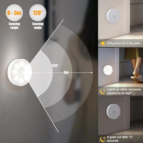 🛒【Auto Motion Sensor & 3 Modes】On/auto/off three modes are adjustable. In automatic mode, the light turns on automatically when motion is detected within a range of 120° and 3 meters via infrared, and turns off 15s after no motion is detected. Switch to “ON” mode, the light is always on and can be used as an emergency light.