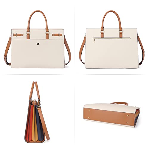 CLUCI Briefcase for Women Leather Laptop 15.6 Inch Business Ladies Work Computer Tote Bags, White, Durability