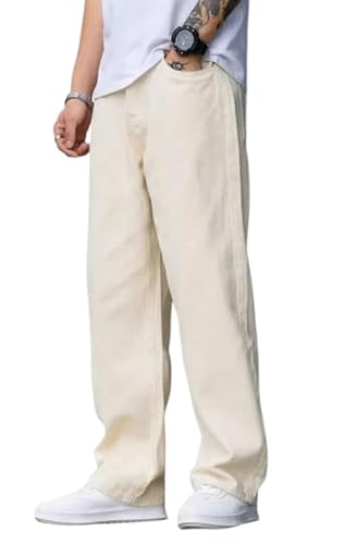 Comfits Men’s Loose Fit Baggy Jeans, Beige, Straight Leg Denim (in, Numeric, 30, Regular, Beige)