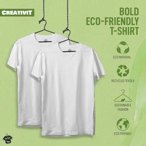 CreativiT Unisex Plain Casual Half Sleeve Round Neck T-Shirt | 100% Recycled Cotton Rich T-Shirt Pack of 2 White