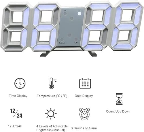 Dangfly Acrylic Digital LED Display Number Clock Table Wall Hanging Alarm Clock White (Works On Electricity) (White)