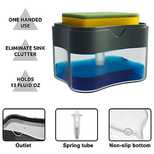 Eightiz 2 in 1 Soap Dispenser for Bathroom Accessories Dishwasher Liquid Holder Liquid Dispenser Pump 400 ML with Sponge Holder Kitchen Sink Accessories Items (Multi-Color)