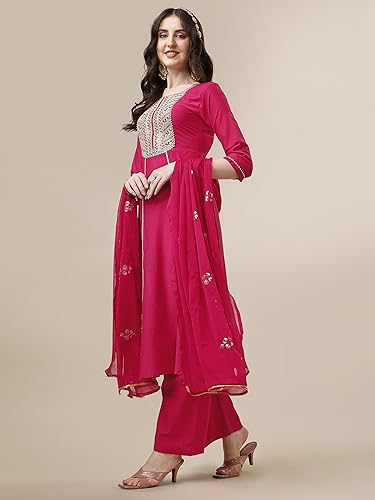 Kurta Details || Fabric : Chinon | Color : Pink | Pattern : Embroidered Thared Work | Style:- A-line Kurta | Neck : Round Neck | Sleeve : 3/4 Sleeve