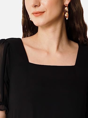 Femvy Designer Georgette Solid Maxi Gown for Women 761 Black,XX-Large