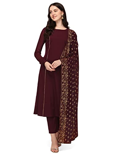 FIORRA Women’s Maroon Poly Crepe Straight Kurta with Pant and Dupatta SET0058-S