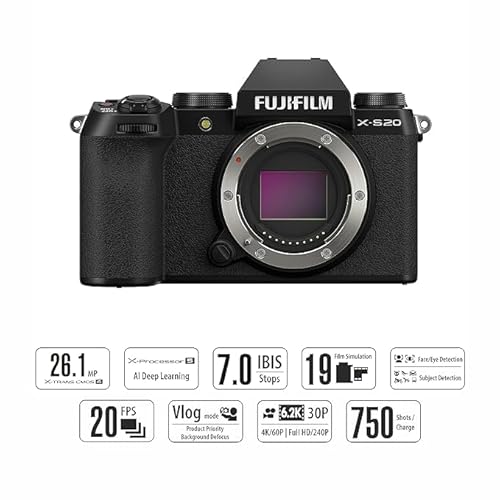 Fujifilm X-S20 26.1MP APS-C X-Trans Sensor|AI Deep Learning|IBIS System Mirrorless Camera|6.2k 30p| Eye/Subject Detection with 15-45mm Zoom Lens f/3.5-5.6 for Content Creation