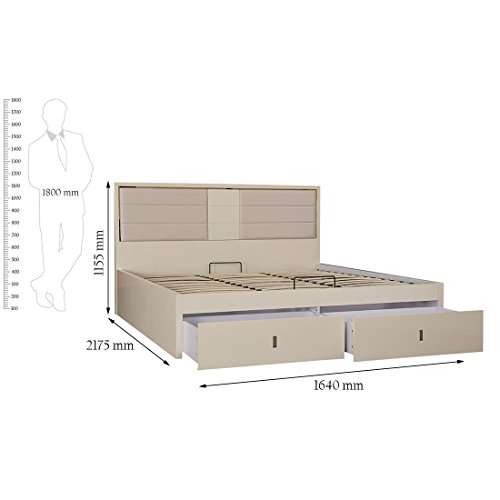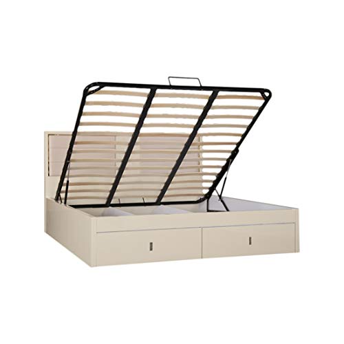 HomeTown Stellar Engineered Wood Hydraulic Storage Queen Size Bed in High Gloss White Colour