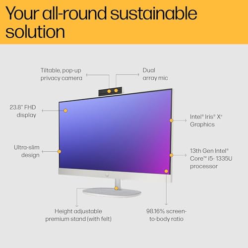 HP All-in-One PC 13th Gen Intel Core i5 27″ (68.6cm) FHD 16GB RAM, 1TB SSD, Intel UMA Graphics, 710 White Wireless Keyboard and Mouse Combo (Windows 11 Home, MSO 21, Shell White, 6.72 Kg) 27-cr0407in