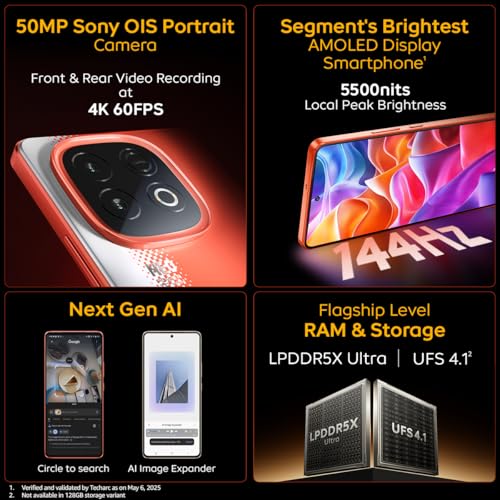Segment’s Brightest AMOLED Display smartphone: Experience a 1.5K AMOLED display with 144Hz refresh rate and up to 5500 nits peak brightness for unmatched clarity