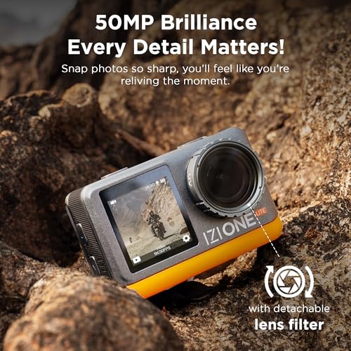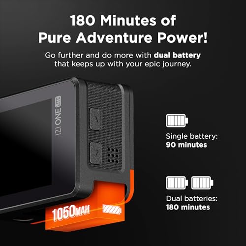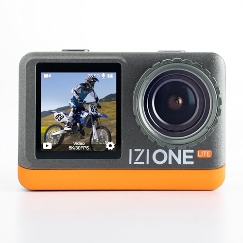IZI One Lite 5K Action Camera – 4K 60FPS 50MP Ultra HD Action Cam, Dual Screen, EIS Stabilization, 170° Wide Angle, 30M Waterproof, 2-Battery – 180 mins Action, 256GB SD Card Support Action Camera.
