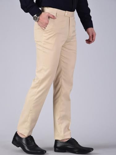 Jack and Jini Formal Mid Rise Pant for Men. Regular Fit, Lightweight, Flat Front, Premium Cotton Polyester Blend Fabric. Office, Party and Casual Wear. Non Stretchable. (Numeric, 34, Regular, Beige)