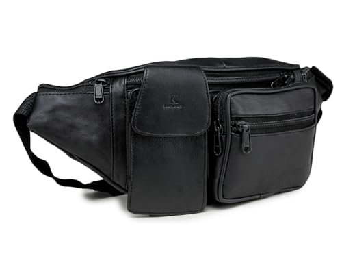 K London Stylish Real Leather Black Waist Bag Elegant Style Travel Pouch Passport Holder with Adjustable Strap(1276_blk)