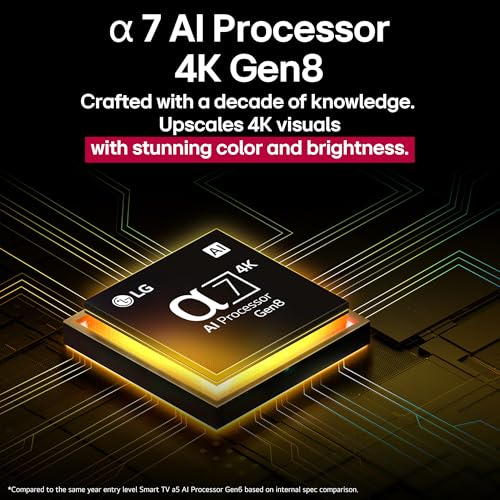 Smart TV Features: ALLM (Auto Low Latency Mode) | WebOS 25 |Intelligent Voice Recognition (with LG ThinQ app) | AI Chatbot | Works with Hey Google | LG ThinQ /Hub | Google Home / Hub | Works with Apple Airplay| 2 GB RAM | 8 GB ROM | 100+ Free LG Channels | Supported Apps: Prime Video, Netflix, JioHotstar, Sony Liv, Zee5, Apple TV and more | Energy Rating: 2 Star | Annual Energy Consumption: 184.84* kWh/year