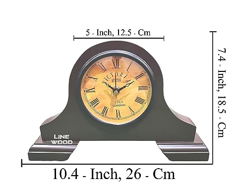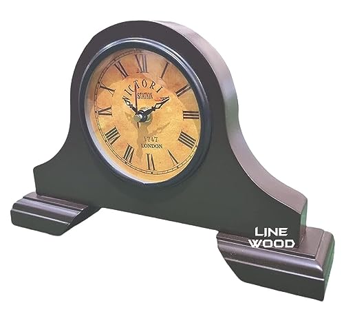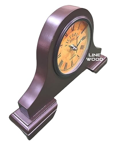 LINE WOOD™ – Handmade Wooden Table Clock Desk Clock Victoria Style Mantel Clock Battery Operated Shelf Clock for Home & Office, Bed Room, Kids Room, Study Room, Study Room Decor Gift (10″- Brown)