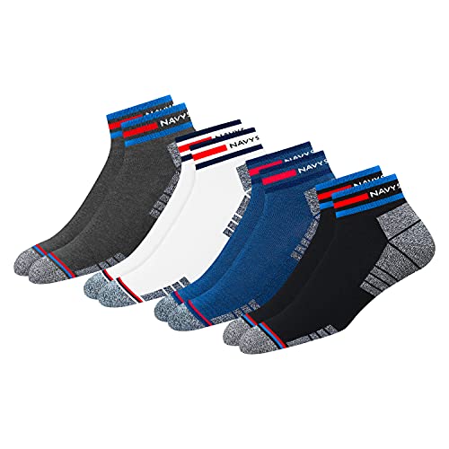 CONTENT: Includes 4 pairs of NAVYSPORT Originals premium combed cotton casual ankle socks with elegant looking signature NAVYSPORT stripes and terry cushioning.