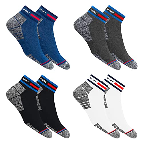 NAVYSPORT Men’s Ankle Length Cotton Socks (Pack Of 4) (NSO-4_Multicolour)