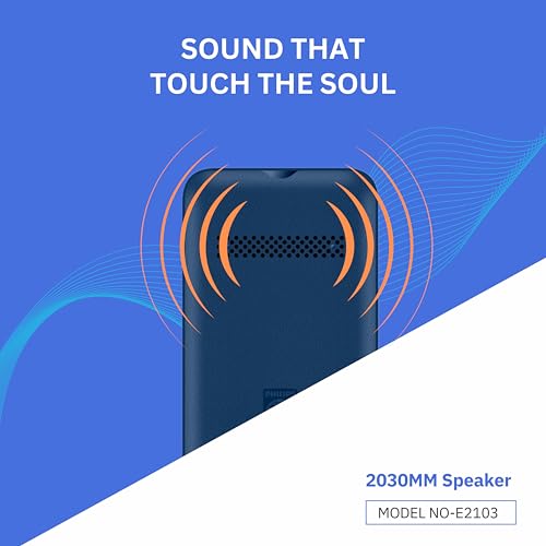 Philips All-New E2103 Sleek & Stylish |Keypad Mobile with 1.77″ Screen|1000 MAH Battery | 2030mm Speaker| Wireless FM | Bright Torch|Blue