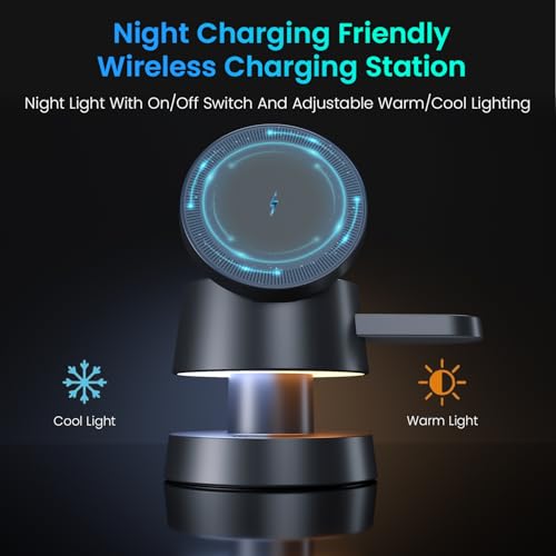 4-in-1 Magnetic Wireless Charging: Charge your iPhone, Apple Watch, and AirPods simultaneously with this all-in-one wireless charging station featuring a night lamp.