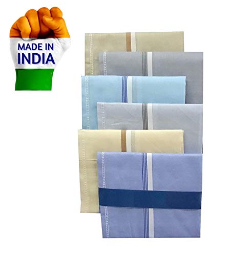 Prime deal 100% Cotton Premium Collection Handkerchiefs Hanky For Men – Striped XXL King Size (Color Light Multi 6 Pcs)