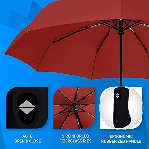 AUTO OPEN and CLOSE FUNCTION: Convenient, our automatic umbrella opens and closes at the touch of a button. No more dealing with the hassle of manual rain umbrellas, get coverage instantly
