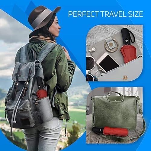 WATER RESISTANT PORTABLE UMBRELLA: Featuring a Teflon coated canopy, our mini umbrella water effectively, allowing for a quick dry experience and minimizing the hassle of storage after use