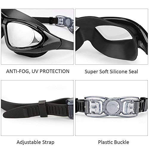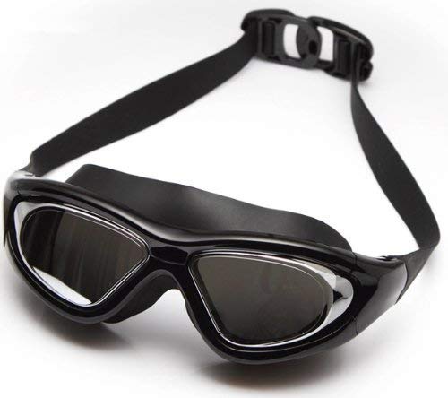 PRIME DEALS Premium Big Frame Competition Swim Goggles with Free Protective Case Pro Clear Lens & Wide-Vision Swimming Goggles with UV and Anti Fog Protection for Adult Men Women – Black.