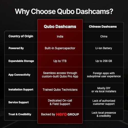 Qubo Car Dashcam Pro 2.7K | Dual Channel | Hero Group | NightPulse Vision | 5MP QHD+ Front (140°), 2MP FHD Rear | G-Sensor | 2″ LCD | Built-in GPS, Wi-Fi, Mic | App | Up to 1TB Storage| Made in India