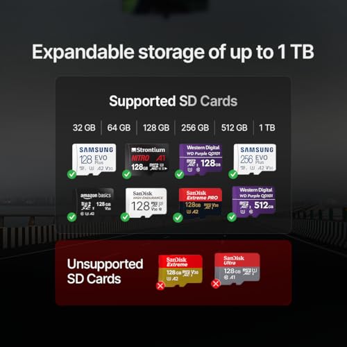 【1TB SD Card Support】Massive expandable storage lets you archive long road trips without compromise (SD card not included).