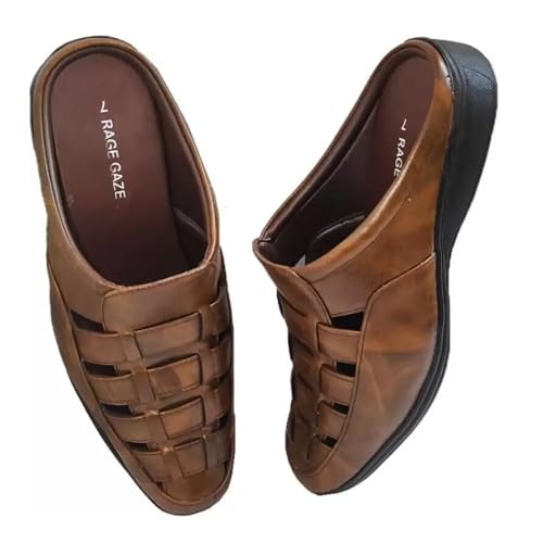 RAGE GAZE Men’s Fashion Sandals – Comfortable Fisherman, Premium PU Padding, Synthetic Leather, Closed-Toe Summer Outdoor Sandals, Brown Ultimate Comfort & Style