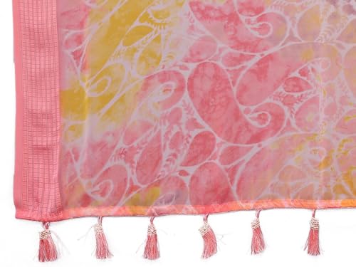 RAJESHWAR FASHION WITH RF Women’s Weightless Patta Paisley Printed Saree For Girls With Satin Patta Woven Border Latkan Tassel & Blouse_Peach