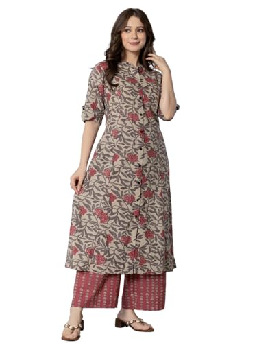 - 82% rytras Women’s Cotton Printed A-Line Kurta with Palazzo Pant Set(Maroon,RYT583,3XL)