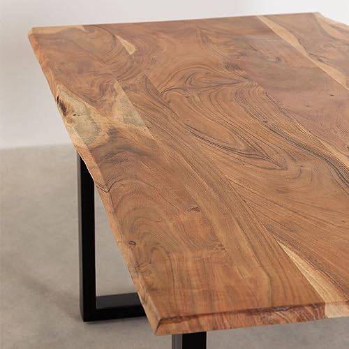 Harmonious Blend of Styles: This dining table seamlessly fuses rustic charm with modern elegance. The combination of solid wood and sleek metal legs creates a captivating juxtaposition, adding a touch of industrial chic to any space. Its versatile design makes it a perfect fit for various interior themes effortlessly enhancing the aesthetic of both traditional and contemporary settings.