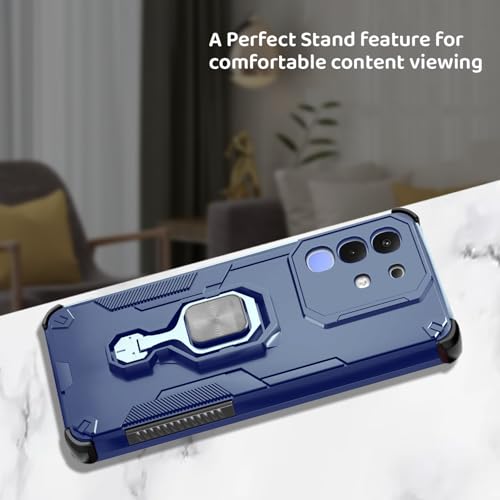 SESS XUSIVE PC,TPU D5 Tough Armor Bumper Back Cover Case For iQOO Z10X 5G/Vivo T4X 5G|Ring Holder & Kickstand In-Built|360 Degree Protection Back Case Cover For iQOO Z10X 5G/Vivo T4X 5G-Blue