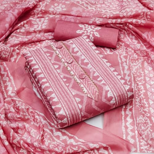 - 77% Sidhidata Women’s Cotton Printed Unstitched Salwar Suit Dress Material With Printed Dupatta (DM Batik Pink_Pink_Free Size)
