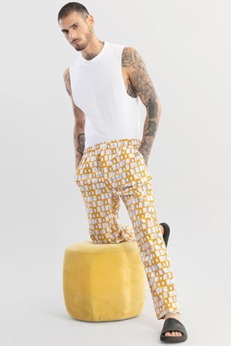 SNITCH Men Sleep & Lounge Wear | Regular Fit Slip-On Penguin Print Pyjama | 100% Cotton Fabric For Comfortable Relaxation & Nightwear |Yellow, 34