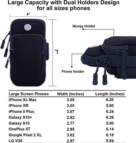 Large capacity: the mobile phone strap has 2 large compartments. Dimensions: 10 cm wide and 18 cm long. This is large enough for mobile phones of all sizes, such as iPhone 14 pro 12 Pro iPhone 12, iPhone 11, 11 Pro, XS, XS Max, XR, X, 8, 8 plus, 7, 7 plus, Samsung Galaxy S23+, 22, 21, S20, ultra, S20+, S10, S10, S9+, Galaxy Note 20, Note 10, Note 9. , Note 8, Google Pixel 3 XL, Pixel 3, Huawei Mate 40, 30, 20 10 Pro, P40, P30, P20, P10 Pro, Mate SE and more.