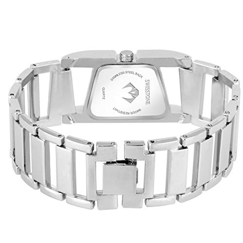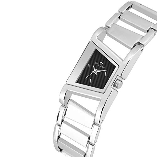 SWISSTONE Stainless Steel Dzl411-Blk Silver Bracelet Wrist Watch For Women, Analogue