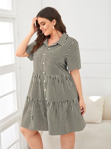 - 79% TADKEE Women’s Plus Size Short Sleeve Striped Dress | Maternity | Maxi Western Dresses for Women (FN-Striped-Plus-Dress-134-Black-3XL)