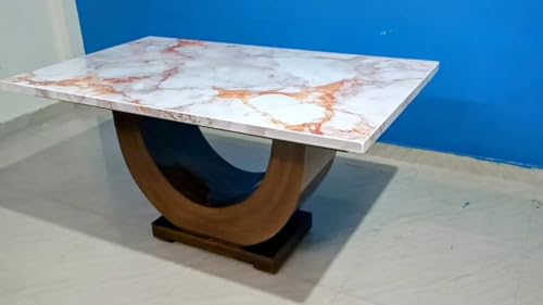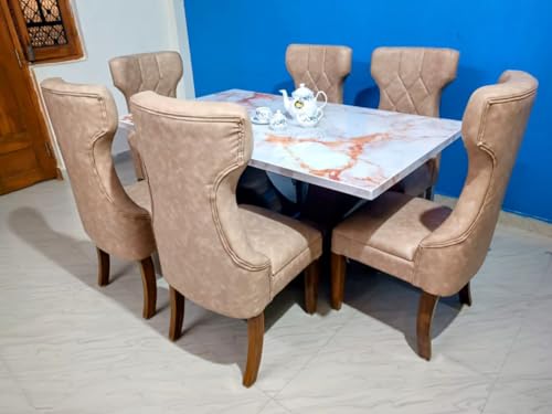 Taxzek Kitchen, Dining Room U-Shape, 6 Seater, Marble Top Dining Table with Upholstered Chairs, Tan