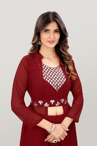Trending Womens Ethnic sets with top, Bottom, Koti| Ethnic Wear | Stitched Lehenga with Blouse and Jacket Design No DM-1_Maroon_XXL