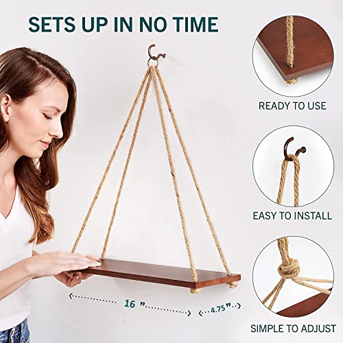 UHUD CRAFTS Hanging Shelves – Adjustable Rope Hanging Shelf, Wall Hanging Decor, Lightweight, Premium Wooden Shelf, Hanging Plant Shelf for Bedroom and Living Room (1 Pcs)