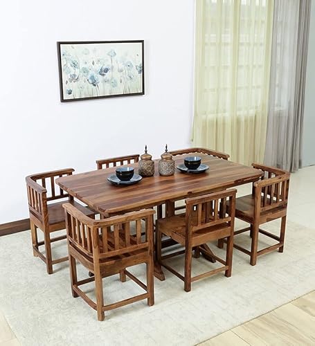 wopno Furniture Pure Sheesham Solid Wood 6 Seater Dining Table for Living Room Home Hall Hotel Dinner Restaurant Wooden Dining Table Dining Room Set Home & Kitchen (Rustic Teak, 6 Seater)