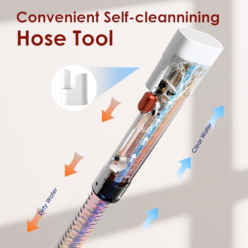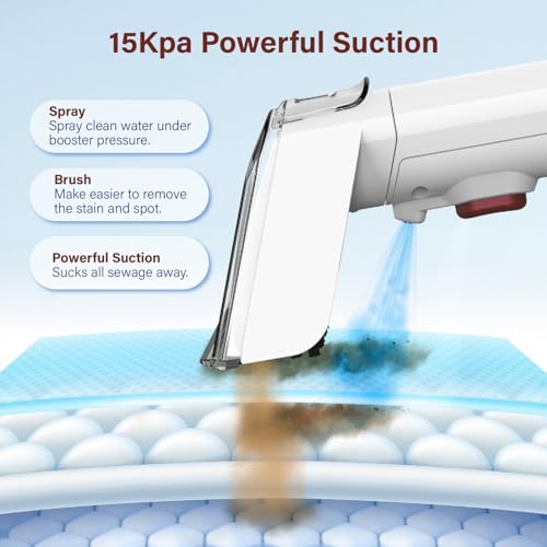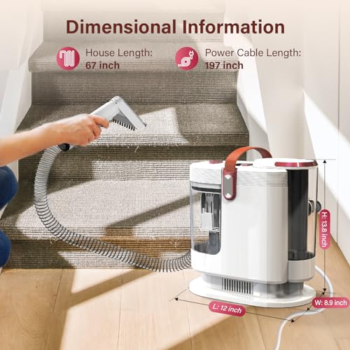 【Portable and Compact】: The upholstery cleaner machine comes with an ultra long hose (5.5 ft) and power cord (16.4ft), and this portable carpet cleaner is lightweight and easy to move around to clean multiple surfaces throughout your home. The brush and power cord can be stored on the machine’s hook to save space.