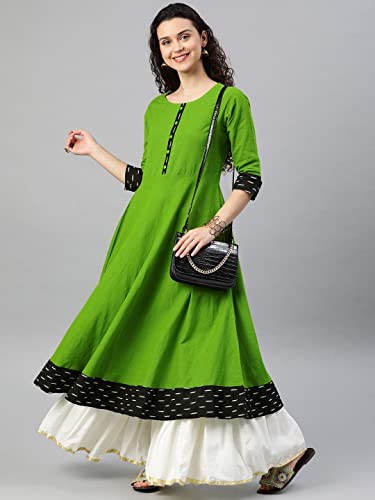 Yash Gallery Women’s Cotton Slub Printed Regular Fit Anarkali Kurta for Women (226YK346GREEN_Green_X-Large)